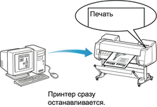 Если во время печати нажать кнопку Стоп (Stop), работа принтера будет зависеть от текущего состояния.