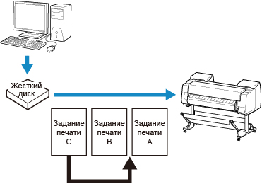 Задания печати, обрабатываемые принтером, вместе называются очередью заданий. Вы можете удалять или заменять задания в очереди заданий по необходимости.