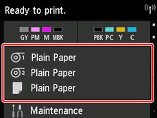 I fogli vengono selezionati automaticamente e il tipo e il formato del supporto specificati dal lavoro di stampa vengono mostrati sul touchscreen.