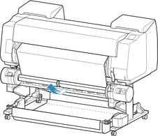 巻き取り開始時の動作を安定させるために、本体の操作パネルでロール紙を送り、紙管に1周程度ロール紙を巻きます。(「ロール紙を手動で送る」参照)