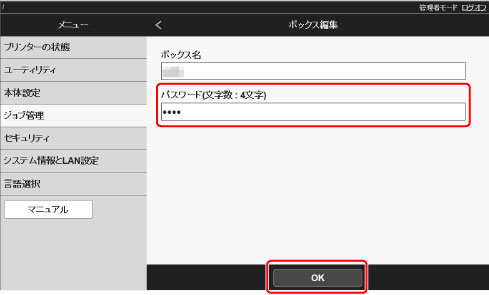 [ボックス編集]ダイアログボックスで暗証番号を設定する