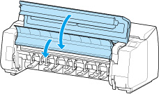 출력 가이드를 내리고 상단 커버를 닫습니다.