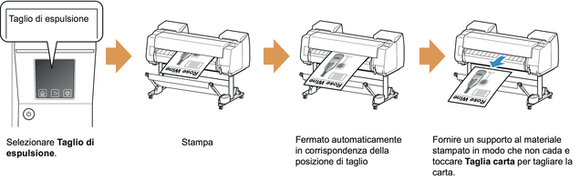 Con Espulsione, la stampa non riprende dopo una serie di lavori stampati continuamente finché il rotolo non viene tagliato.
