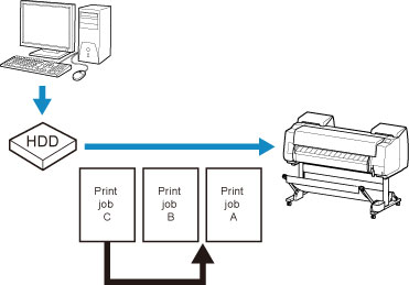 - Per informazioni sulla gestione dei lavori in sospeso, vedere Gestione dei lavori in sospeso (stampa o eliminazione dei lavori in sospeso).