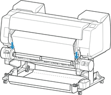 以降の操作はロールユニットにロールホルダーがセットされておらず、ロールホルダーにはロール紙がセットされていない状態を前提としています。ロールユニットにロールホルダーがセットされている場合は、先にロールホルダーをロールユニットから取り外し、ロールホルダーにセットされたロール紙を取り外してください。(「ロール紙をプリンター下段のロールユニットから取り外す」参照)(「ロール紙をロールホルダーから取り外す」参照)