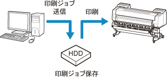 - 印刷と同時に一時的に印刷ジョブを保存し、印刷後に印刷ジョブを消去します。