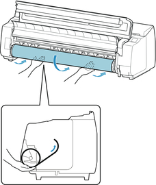 Установите рулон на Держатель рулона. (См. в разделе "Загрузка рулонов в держатель рулона.")