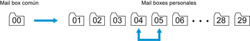Los trabajos almacenados en el buzón compartido se pueden eliminar automáticamente bajo determinadas circunstancias. Para evitar la eliminación de los trabajos, trasládelos del buzón compartido a los cuadros personales.