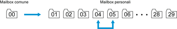 I lavori di stampa salvati sul disco rigido della stampante (lavori salvati) possono essere spostati dalla casella corrente a un'altra casella procedendo come indicato di seguito.