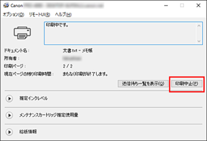 プリンターに送信中のジョブは、プリンターのウィンドウで中止できます。