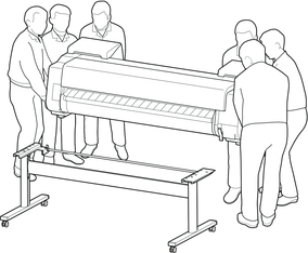 プリンターを持ち運ぶときは、必ず6人以上で左右から持ち、腰などを痛めないように注意してください。
