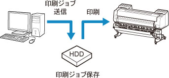 印刷ジョブを、プリンターのハードディスクの一時保存領域に保存しながら印刷を行います。
