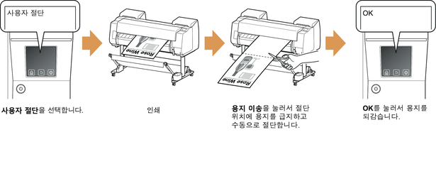 용지 절단(임의 위치에서 롤 용지를 절단하려는 경우)