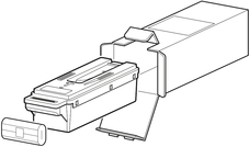 상자를 열고 비닐 봉지와 유지 관리 카트리지를 꺼냅니다.