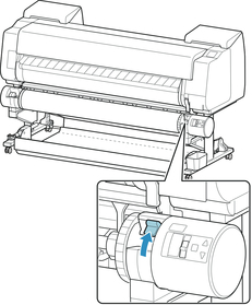 Переведите переключатель Фиксатор держателя рулона на блок рулона в положение разблокировки.