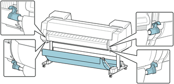 Вы можете прикрепить стержень корзины (со стороны шнура) к держатель стержня на подставке или к передней части принтера.