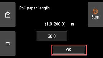 Tap the keypad appearing on the touch screen, enter the roll paper length, and then tap OK.