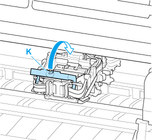 17. While holding center part (K) of print head lock lever, lower it toward back until it clicks.