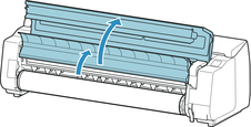 Con las dos manos, gire el Soporte del rollo en la dirección de la flecha para rebobinar el rollo.