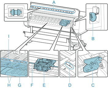 Déplace la tête d'impression. Joue un rôle essentiel dans l'impression.  (Reportez-vous à « Chariot ».)