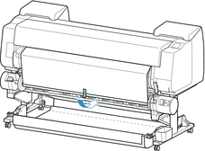 Prima di caricare la carta in rotolo da prelevare sull'unità rotolo, impostare l'unità rotolo come dispositivo di prelievo sul touchscreen della stampante. (Vedere "Modifica delle modalità unità rotolo.")