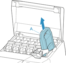 Rimuovere il serbatoio d'inchiostro afferrando l'impugnatura (A), quindi toccare OK.