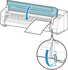 É possível ajustar a intensidade do vácuo segurando o papel contra o exibição quando a alavanca de liberação estiver levantada. Se for difícil carregar o papel, toque em Sucção na tela sensível ao toque e ajuste a intensidade do vácuo. É possível ajustar a intensidade do vácuo para 5 níveis.