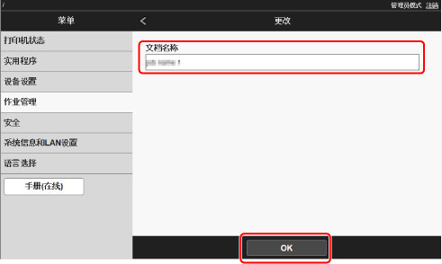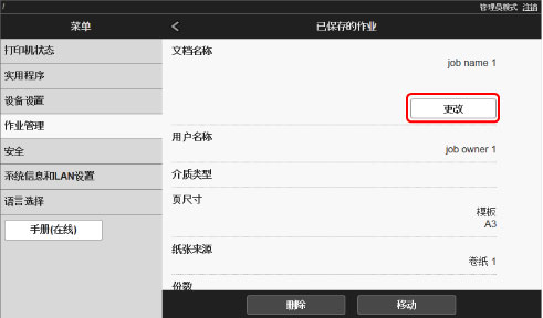 如下所示,可以重新命名打印机硬盘中存储的打印作业(已保存作业)。