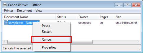 Using Canon IJ Status Monitor, you can cancel print jobs that have already been received by the printer or that are currently being printed.