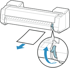 When instructions for removing sheet appear on touch screen, lift release lever while holding sheet, and remove sheet.