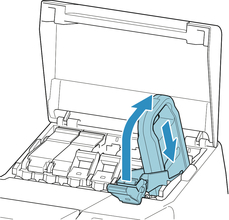 Heben Sie die Sperrhebel für die Tintenpatrone bis zum Anschlag an und drücken Sie diese dann nach vorne unten.