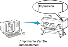 Lorsque vous appuyez sur le bouton Arrêt (Stop) pendant l'impression, le fonctionnement de l'imprimante varie en fonction de l'état actuel.