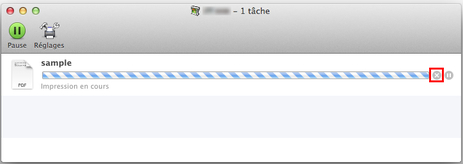 Cliquez sur × pour le travail dont vous souhaitez annuler l'impression ou sélectionnez le travail dont vous souhaitez annuler l'impression et cliquez sur Supprimer pour supprimer le travail.