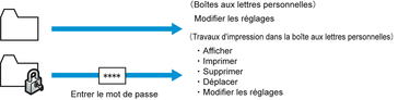 Pour une sécurité renforcée, vous pouvez spécifier un mot de passe pour les zones personnelles. Après avoir défini un mot de passe, vous devrez modifier les paramètres de la zone personnelle, ainsi que l'affichage, l'impression, la suppression, le déplacement et la modification des tâches enregistrées dans votre zone personnelle.