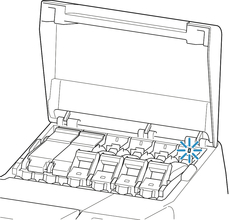 Aprire il coperchio del serbatoio d'inchiostro che si sta sostituendo e controllare l'indicatore luminoso dell'inchiostro.