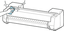 Se la guida di uscita è sporca, potrebbe imbrattare il bordo della carta quando viene tagliata. Si consiglia di pulire la guida di uscita anche se non sembra sporca, perché potrebbe essere coperta di polvere di carta.