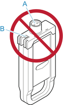 절대로 잉크 공급부(A) 또는 금속 접촉부(B)를 만지지 마십시오. 주변이 더러워지거나, 잉크 탱크가 손상되거나, 인쇄 품질에 영향을 미칠 수 있습니다.