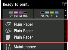 홈 화면에서 용지 설정 표시 영역을 누릅니다.