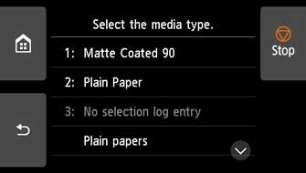 Se sulla carta in rotolo non è stampato alcun codice a barre e Gestisci quant. rotolo rimanente è stato impostato su Attiva, specificare la lunghezza del rotolo dopo aver selezionato il tipo di supporto. (Vedere "Specifica della lunghezza della carta").