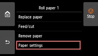 영역을 탭합니다.롤 용지 1(Roll paper 1) 또는 롤 용지 2(Roll paper 2) 화면이 나타납니다.