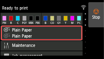 На экране НАЧАЛО коснитесь области сведений о бумаге.