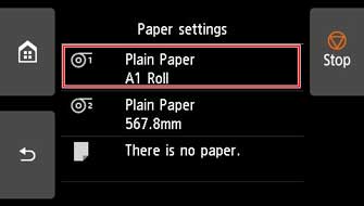 Puntee el área de visualización de la configuración del papel en la pantalla de inicio de la pantalla táctil.