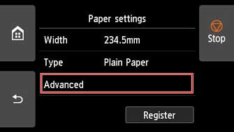 Aparecerá la pantalla Configuración de papel avanzada (Advanced paper settings).