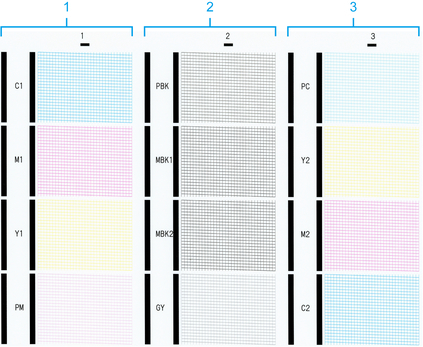 - Patrón 1 (Pattern 1): C1/M1/Y1/PM