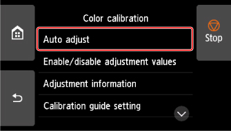 Dopo aver confermato la carta e dopo aver eseguito la calibrazione colore, il valore di regolazione della calibrazione viene impostato automaticamente.