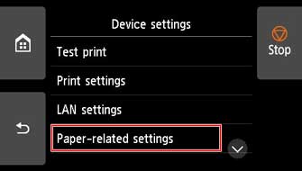 Toque na área de exibição das configurações do papel na tela Inicial da tela sensível ao toque.