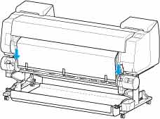 Ao enrolar para dentro, o afrouxamento do papel enrolado poderá ser evitado pressionando o papel em rolo com o braço. Porém, isso poderá produzir traços de pressão sobre o papel. Nesse caso, toque na área da unidade em rolo da área de exibição de informações de mídia e configure Configur. de retenção de papel como Liberar.