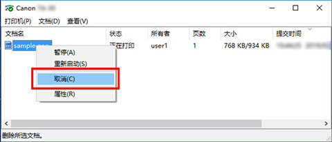 可以通过Canon IJ Status Monitor取消打印机已接收的作业及正在打印的作业。