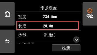 在送入纸张后更改纸张的长度时,请用以下步骤指定该长度。