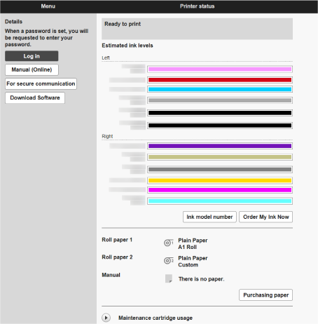 Cuando termine de comprobar el estado de la impresora y de cambiar la configuración del dispositivo, seleccione Cerrar sesión (Log out).